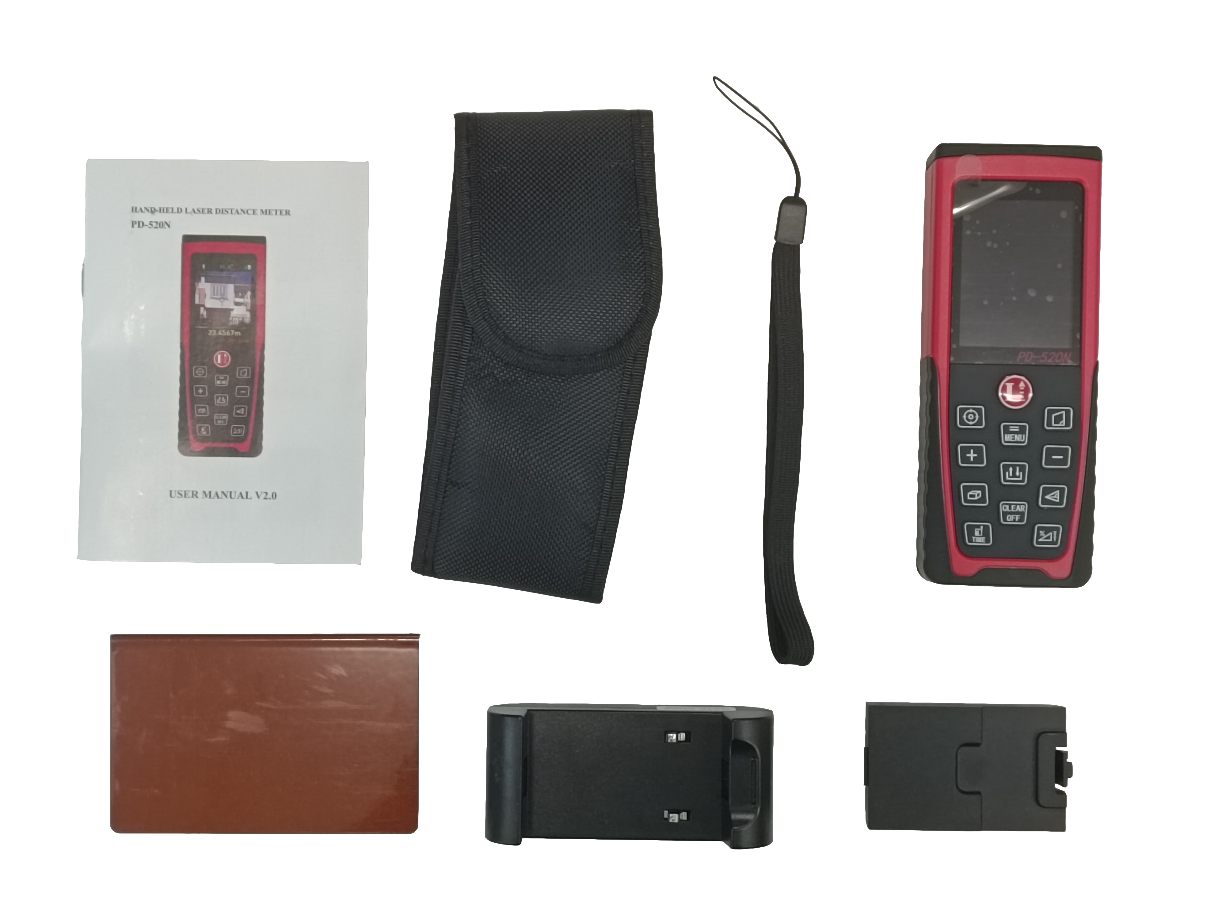 Лазерный дальномер PD-520N, перезаряжаемая литий-ионная батарея, зарядное устройство, отражательная пластина, руководство пользователя, чехол, ремешок