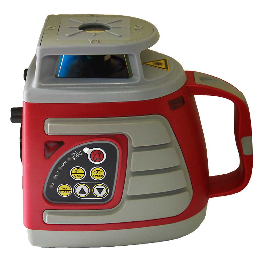Проецирует горизонтальную или вертикальную плоскость (для установки на штатив в конструкции нивелира имеется два резьбовых отверстия). Для получения максимально видимой плоскости имеется несколько скоростей вращения лазерного луча (0,150,300,600 оборотов в минуту) и режим сканирования луча в определенном секторе (10º, 30º, 60º).